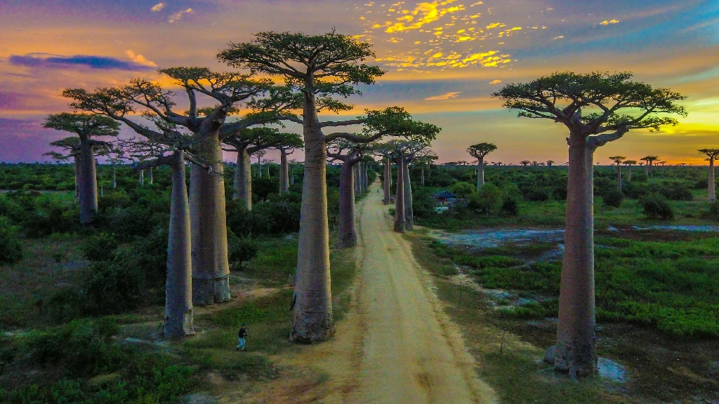 L’allée des baobabs est un groupe de baobabs qui bordent la route de terre entre Morondava et Balai’i Tsiribihina dans la région occidentale de Madagascar. L’allée des Baobabs est un des plus beaux sites de la Grande Île. Véritable patrimoine national, ce lieu, non loin de Morondava, est un incontournable lors d’un voyage au centre-ouest de Madagascar. Ce complexe spectaculaire est l’une des attractions les plus visitées de la région. Vous verrez aussi des baobabs appelés amoureux, qui selon les croyances des habitants peuvent porter chance aux couples. L’espèce la plus importante sur le site est Adansonia grandidieri, qui est bien sûr endémique de Madagascar. Le baobab sacré se distingue parmi ceux qui bordent la piste. Les habitants viennent déposer des offrandes et honorer leurs ancêtres. Selon la légende, les dieux n’apprécient pas l’orgueil excessif des baobabs. Ils ont décidé de les planter à l’envers, avec les racines en l’air.